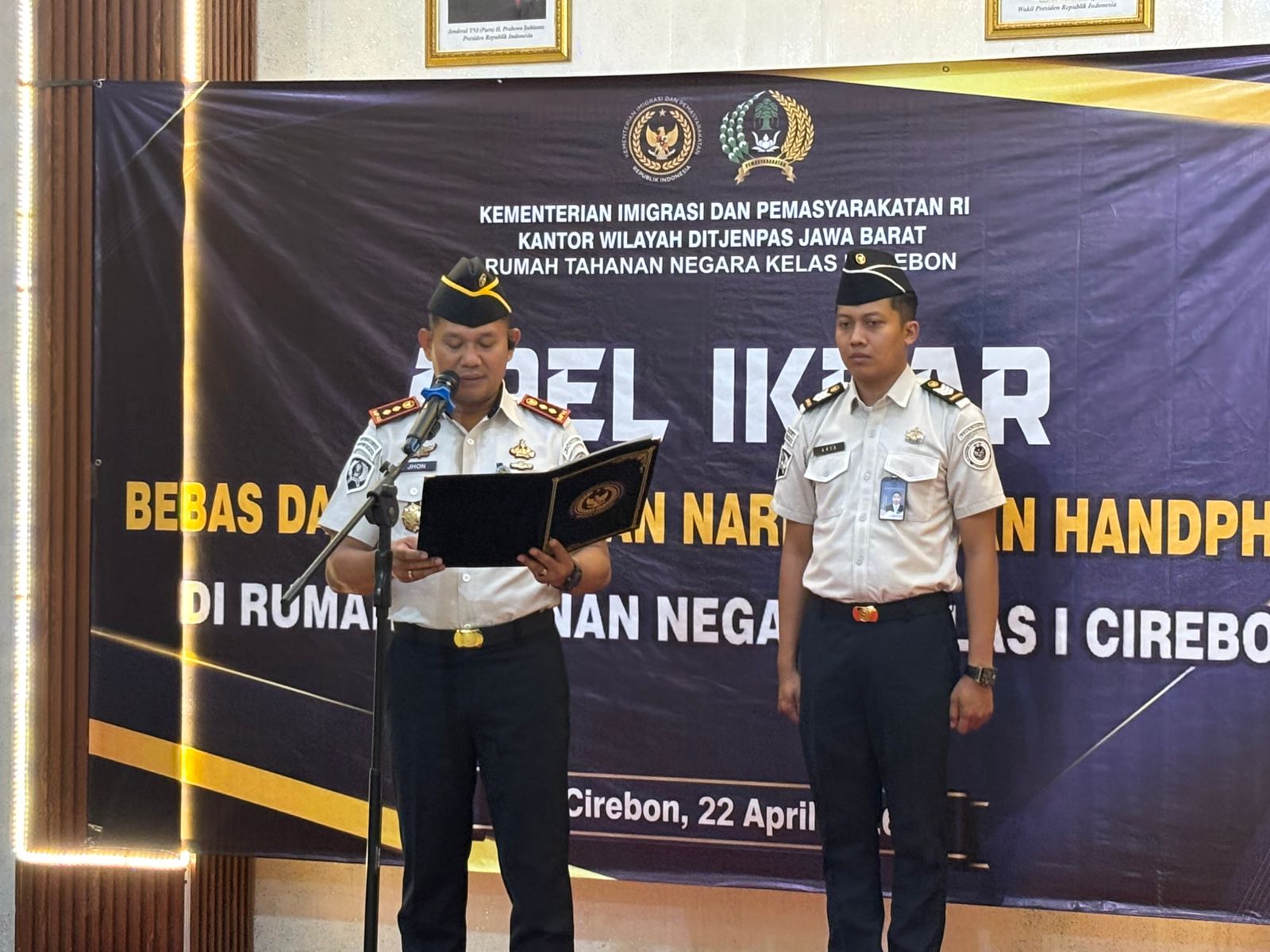 INAPOS, KOTA CIREBON.- Kepala Rumah Tahanan Negara (Rutan) Kelas I Cirebon, Jonson Manurung, menegaskan komitmennya dalam menciptakan lingkungan yang bersih dari peredaran narkoba dan penggunaan handphone ilegal melalui kegiatan apel pembacaan ikrar zero narkoba dan handphone, Selasa (21/4/2026).